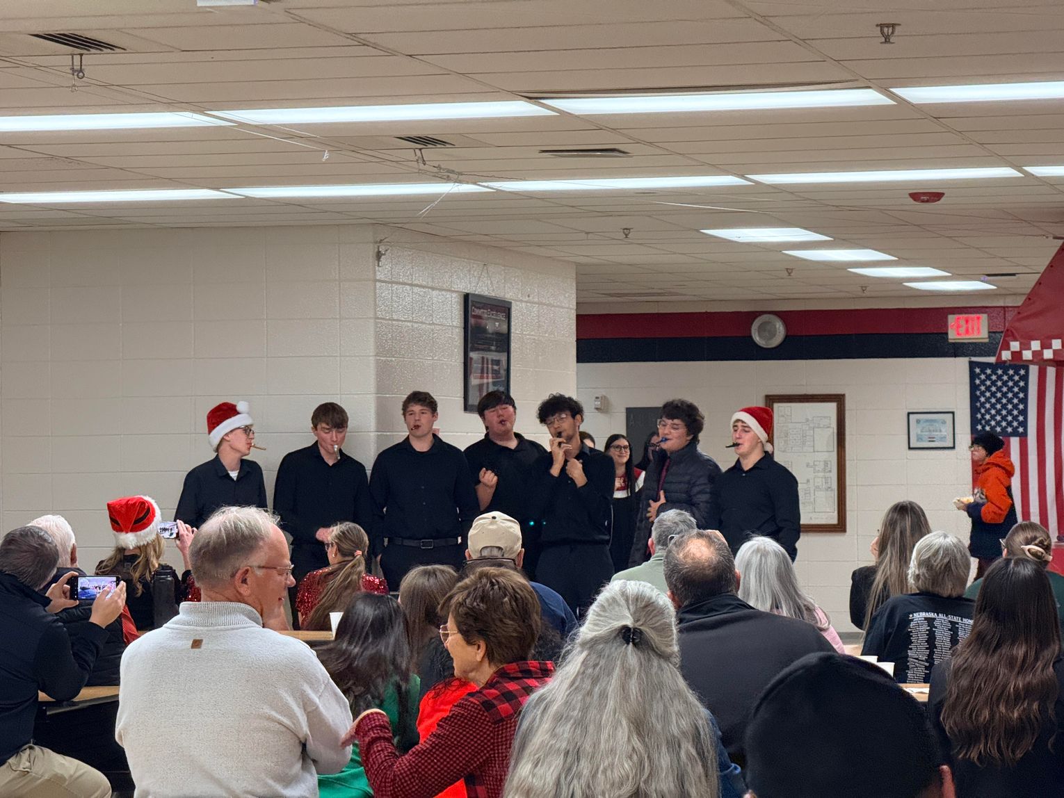 THE AUBURN High School Symphonic Choir sang We Need a Little Christmas from Mame; Gettin’ in the Mood (for Christmas),a takeoff on Glenn Miller’s In The Mood and Snowy Day. Student-vocalists are Josie Zimmerman, Gianna Johnson, Kinsley Gerdes, Addison Fankhauser and Alexa Janssen, sopranos; Ella Ackley, Madeline Svoboda, Hailey Janssen, Leah Tucker, Destiny Boomgaarn, Twila Haynes, Gillian Hanna, Veronica Porter, Teagan Fowler, Celia Neal, Gracelyn Bohling, LeAnn Hershey and Ellie Phillips, altos; tenors Elijah Powell, Lily Harrah and Ashlynn Johnson; and basses Zackariah Haynes, Michael Stone, Ethan Pemberton, Darryn Oliver and Sagen Noland. Andrew Davis is Auburn Public Schools secondary vocal music director. Lexie Baack accompanied.