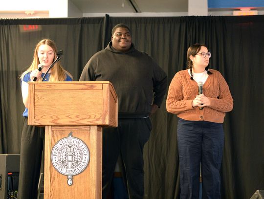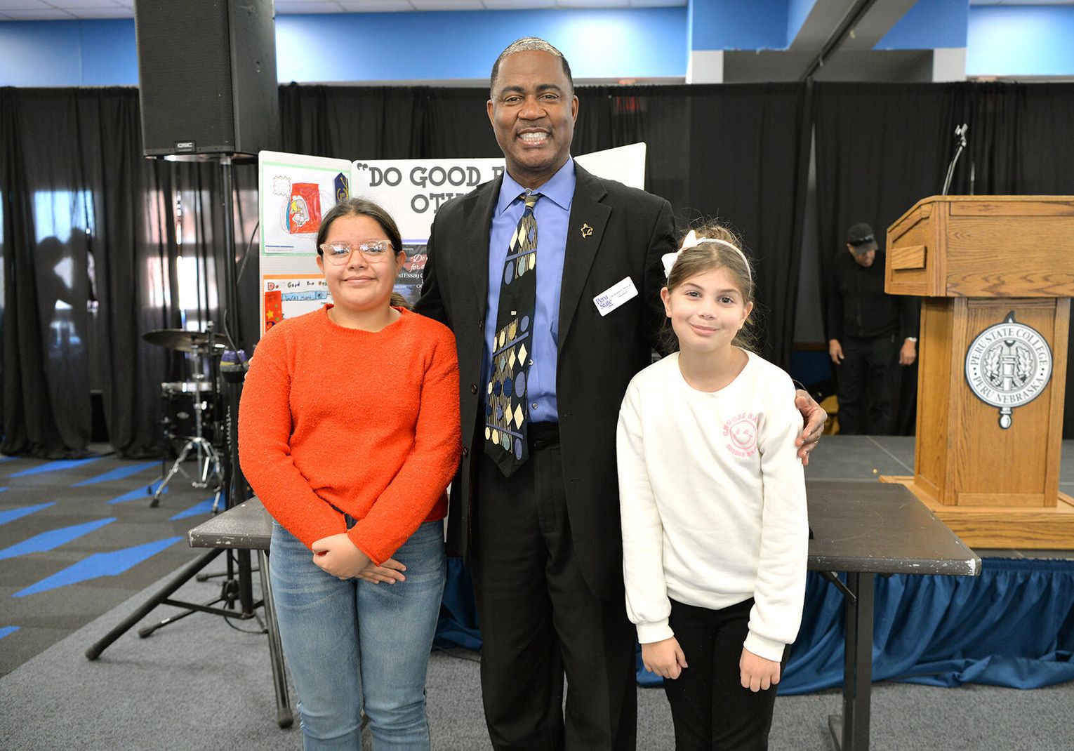 Winners of the Do Good for Others Essay and Poster Contest Camilla Coleman of Bellevue and Penny Peralta of Nebraska City were congratulated by Dr. Mock.