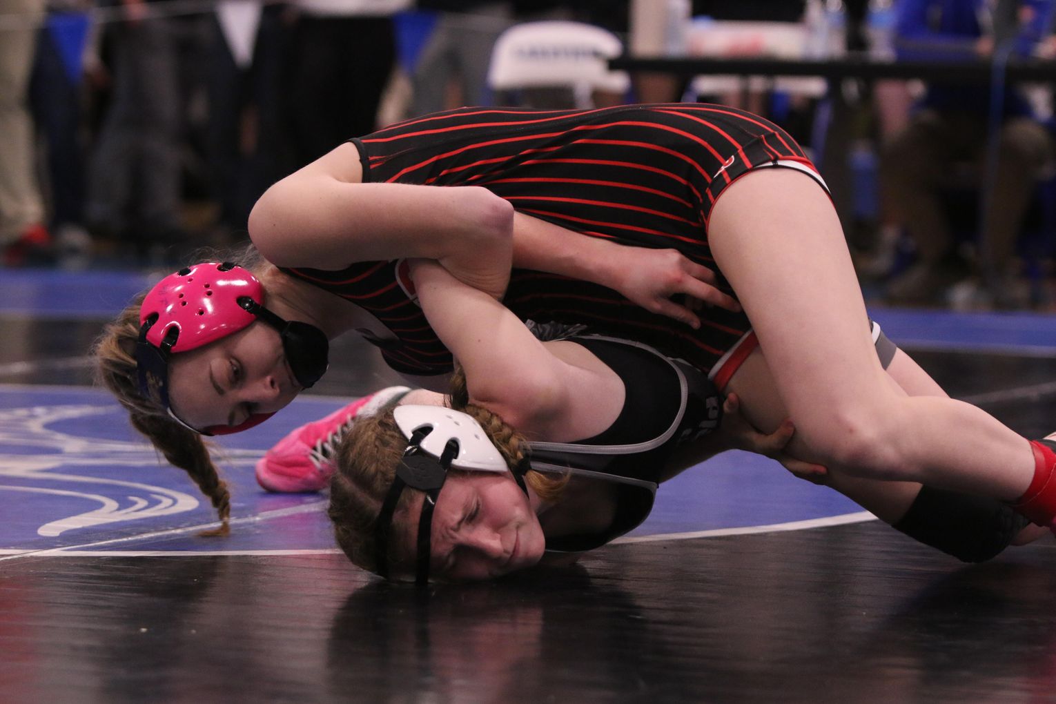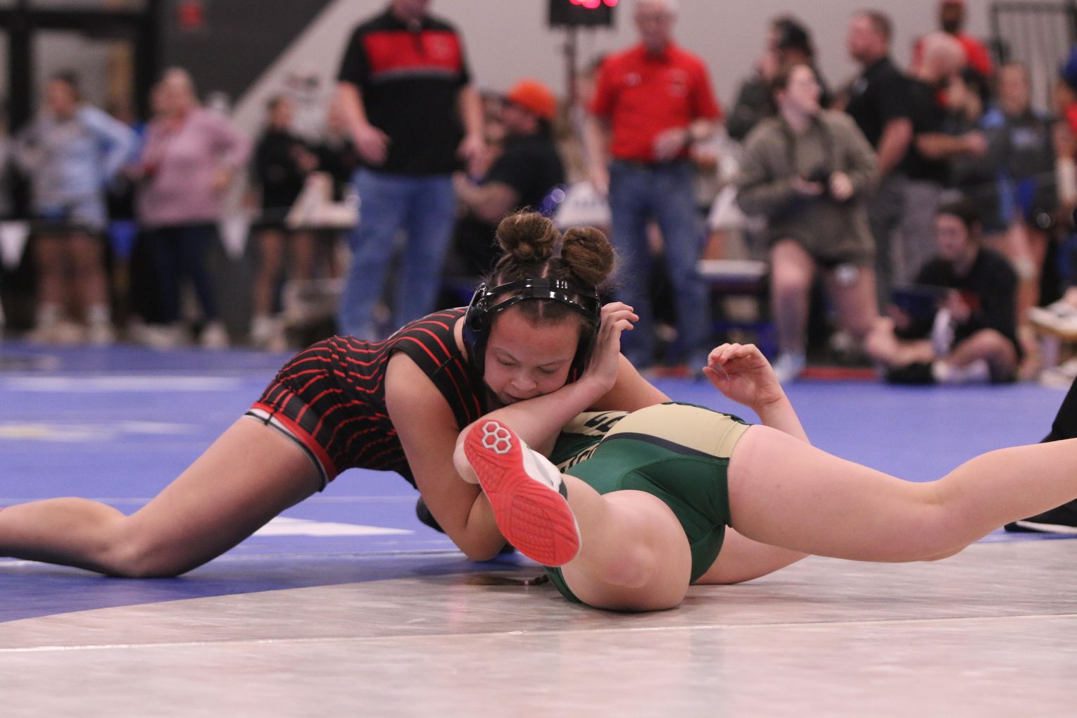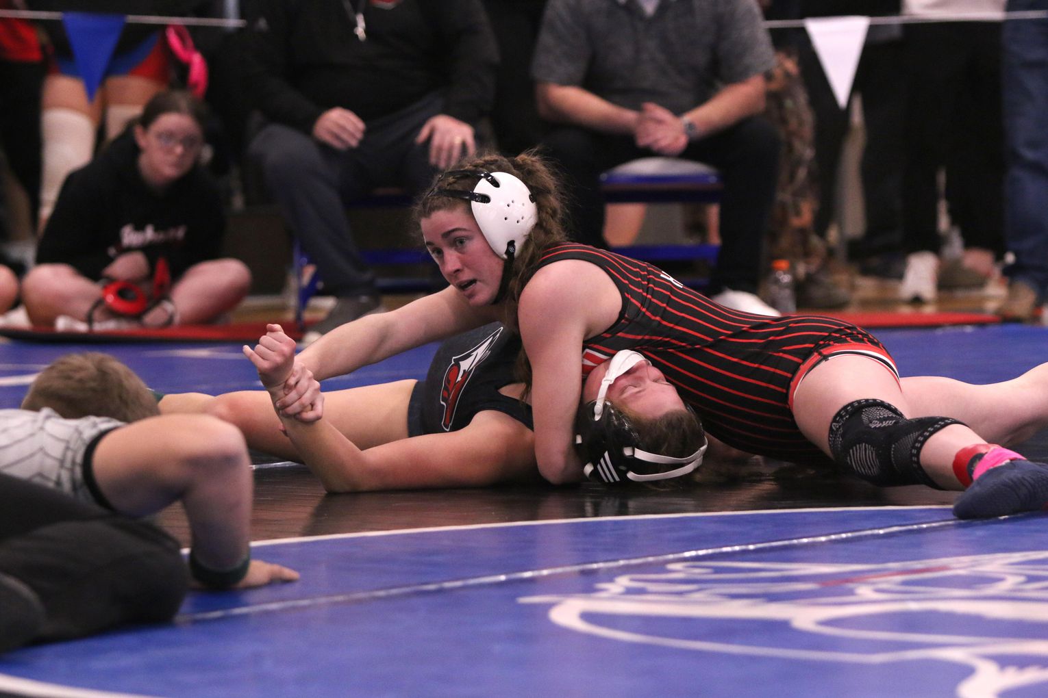 Hadley Mazzulla gives her chicken wing another try to get a pin in her second match.