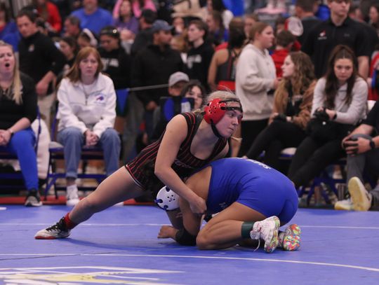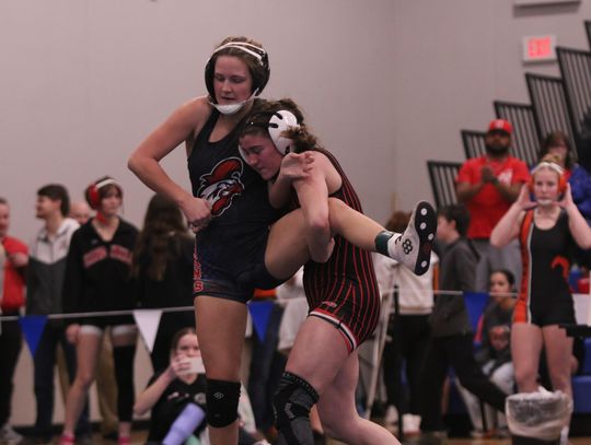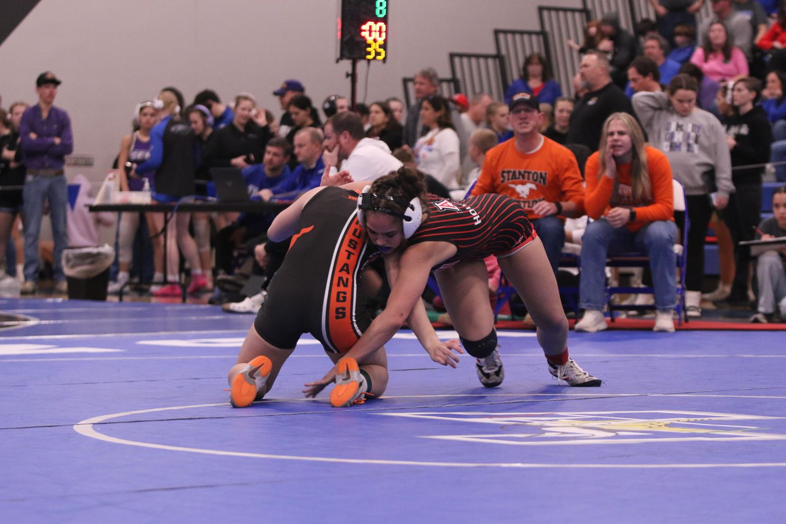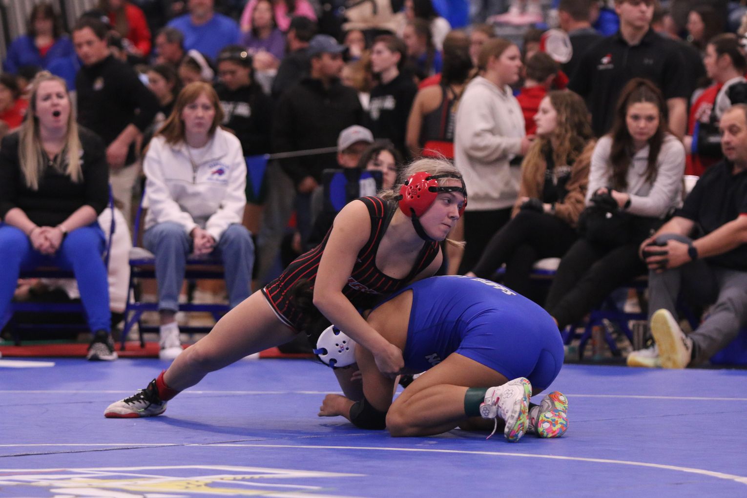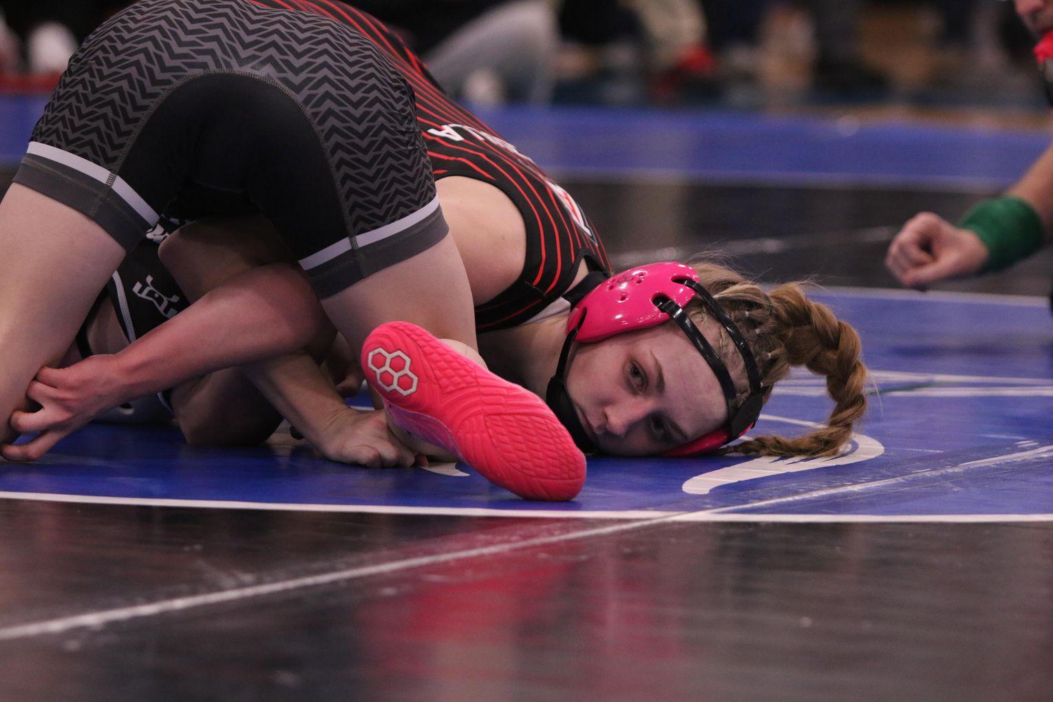 Hadley Mazzulla gives her chicken wing another try to get a pin in her second match.