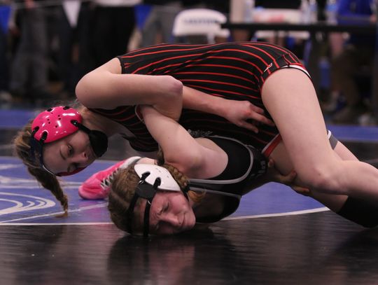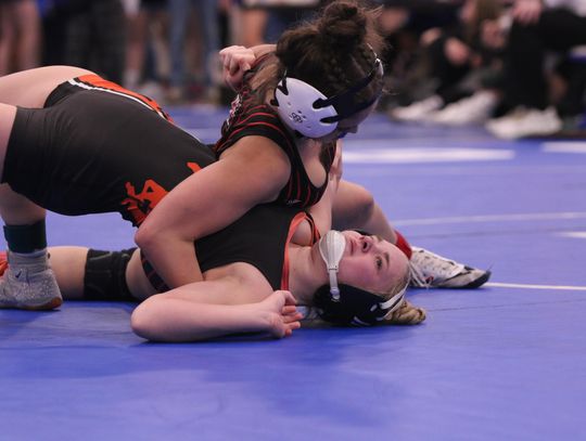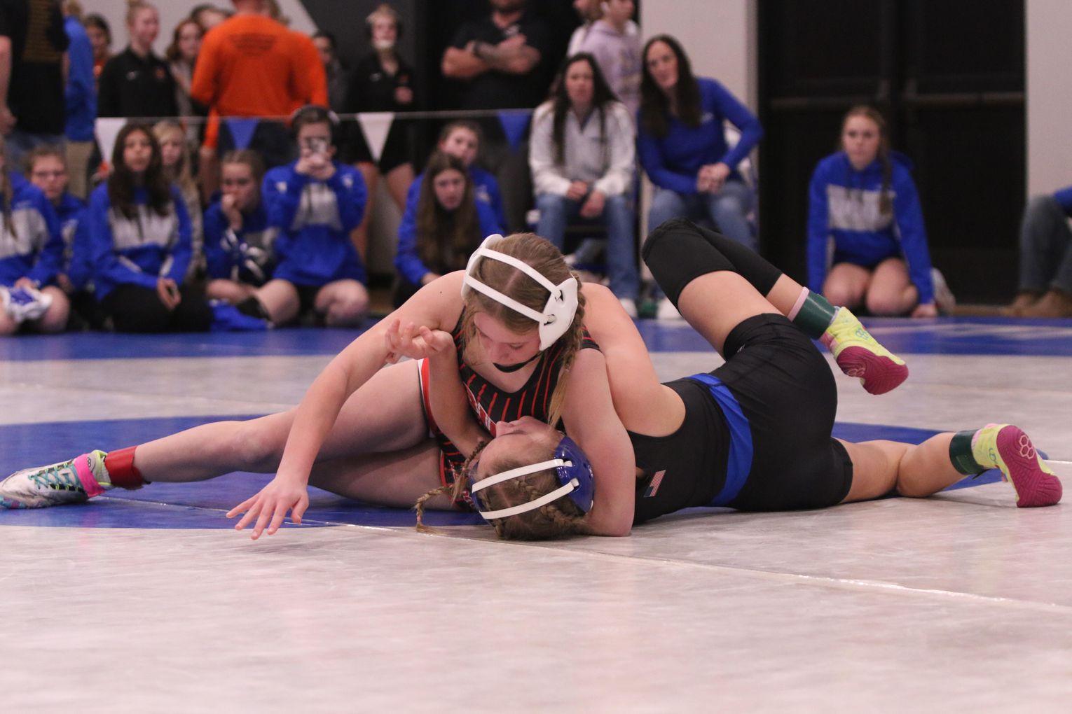 Tayla Jones tries to keep her opponent on her back for a pin.
