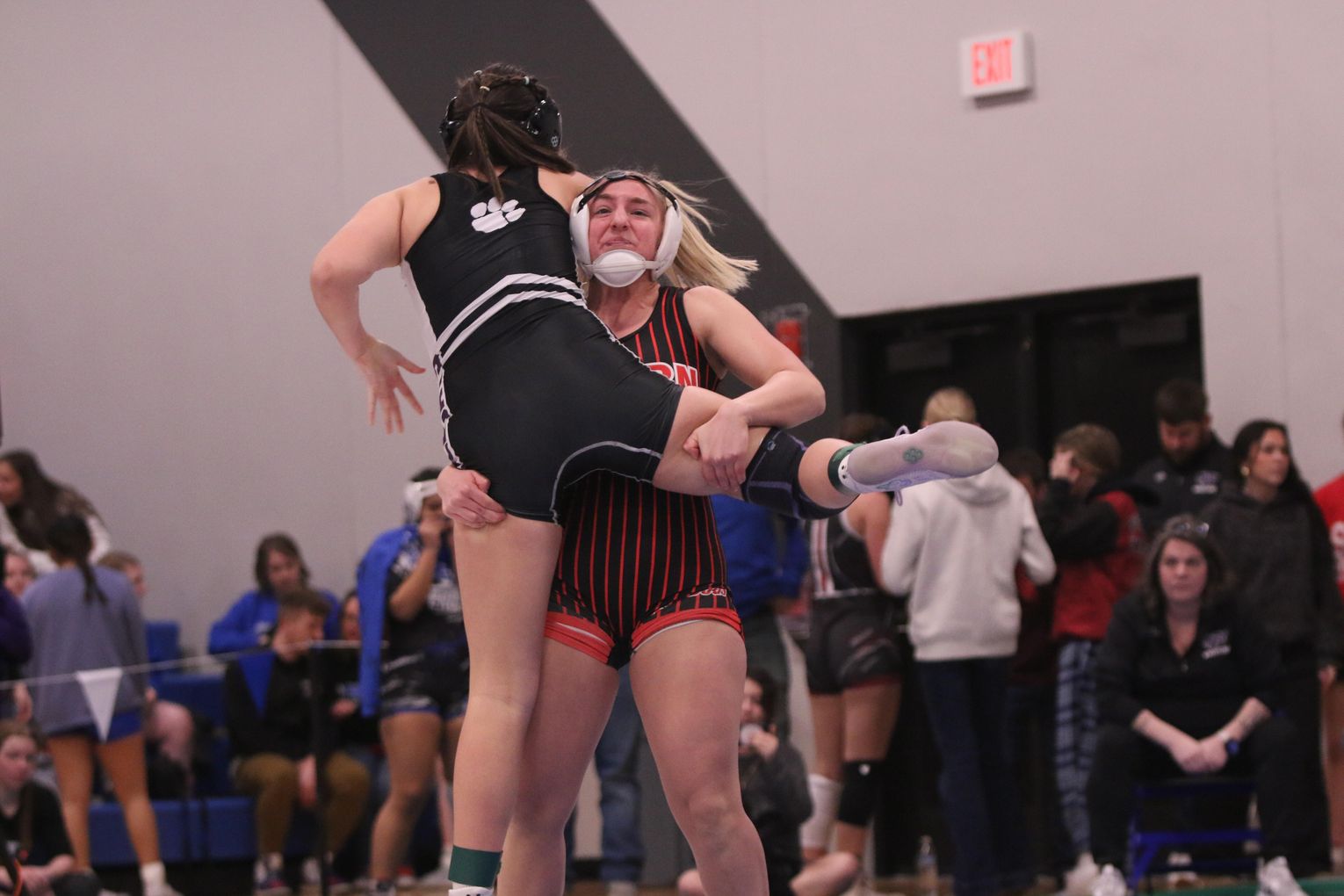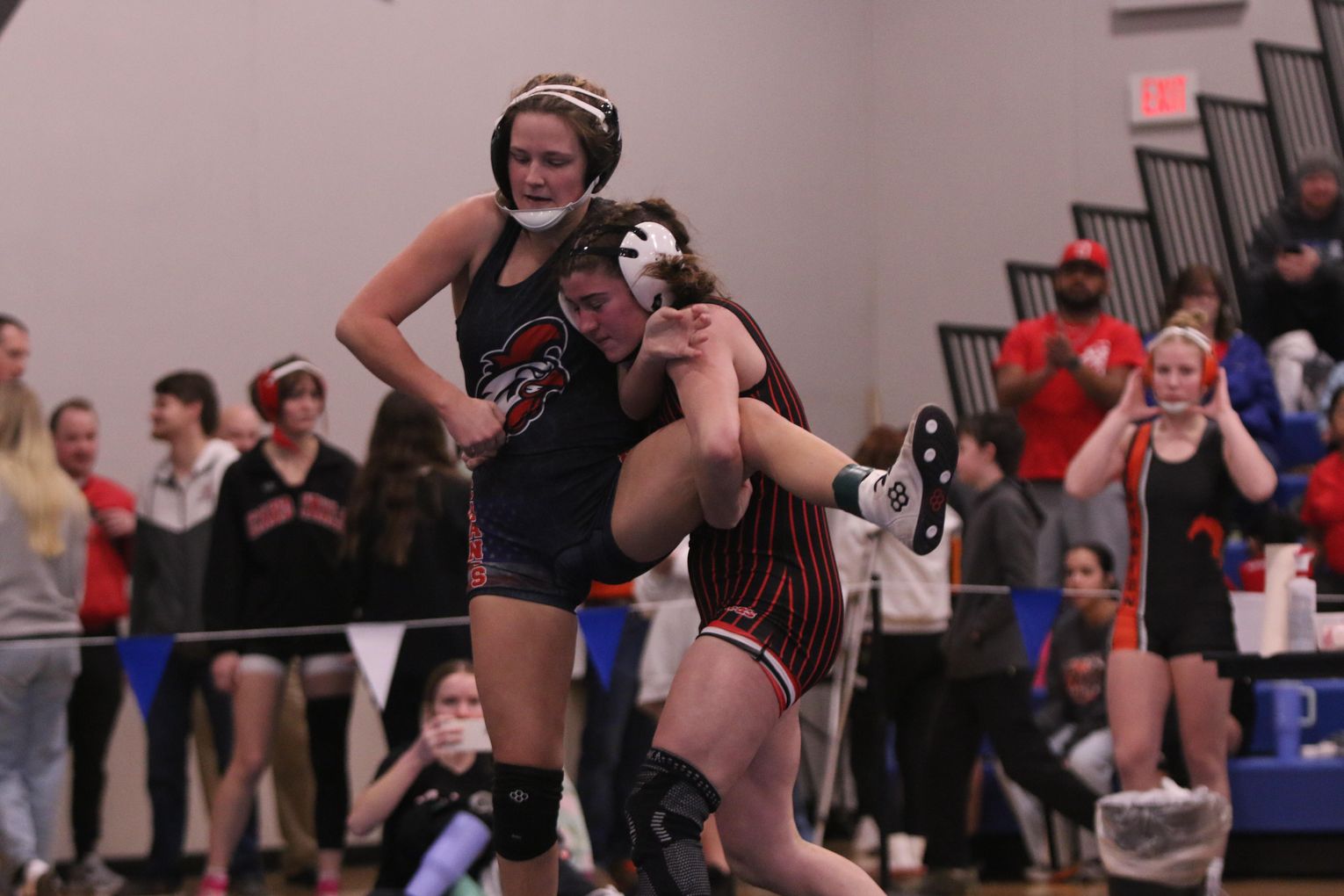 Lucia Campbell heaves her opponent with a double leg for a takedown.